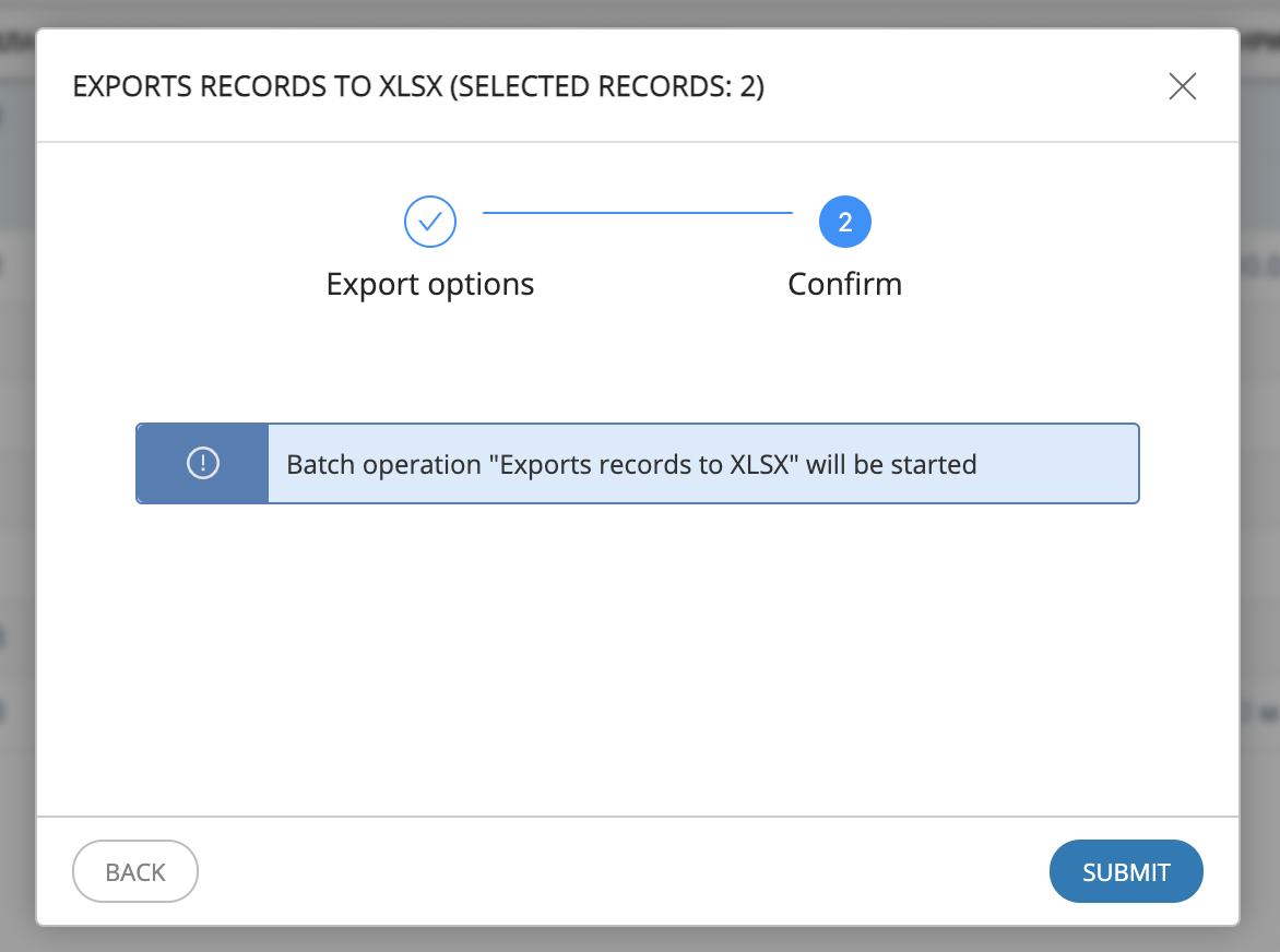 This will make the "Actions" button available in the upper right corner. Click it and select "Export records to XLSX".